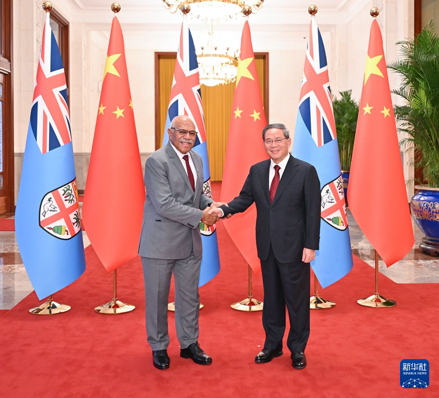 ??李強(qiáng)表示,斐濟(jì)是首個(gè)同中國(guó)建交的太平洋島國(guó),中方一直將斐濟(jì)視為南太地區(qū)最重要合作伙伴之一。習(xí)近平主席將同總理先生舉行會(huì)晤,共同擘畫(huà)兩國(guó)關(guān)系發(fā)展新藍(lán)圖。中方一貫堅(jiān)定支持斐濟(jì)人民走自主選擇的發(fā)展道路,愿同斐方以明年兩國(guó)建交50周年為契機(jī),落實(shí)兩國(guó)領(lǐng)導(dǎo)人共識(shí),繼續(xù)做彼此信賴(lài)、相互支持的真朋友,加強(qiáng)高層和各級(jí)別交往,推動(dòng)中斐全面戰(zhàn)略伙伴關(guān)系健康穩(wěn)定向前發(fā)展,更好造福兩國(guó)人民。