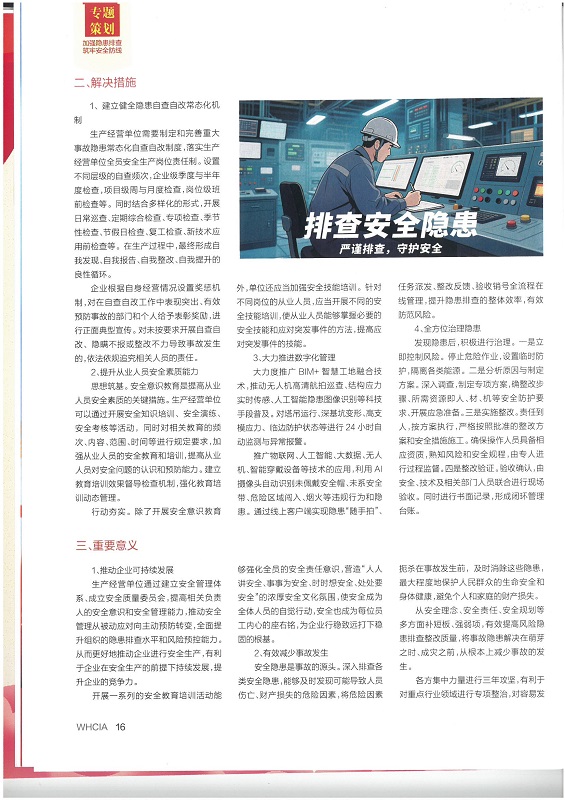 加強(qiáng)安全隱患排查是預(yù)防事故的第一道防線,直接關(guān)系人民群眾最根本的利益,也是企業(yè)生存發(fā)展和履行社會(huì)責(zé)任的必然要求,對(duì)保障經(jīng)濟(jì)平穩(wěn)運(yùn)行和社會(huì)和諧穩(wěn)定至關(guān)重要。必須深刻認(rèn)識(shí)其重要性,將其作為一項(xiàng)基礎(chǔ)性、長(zhǎng)期性、根本性的工作抓緊抓實(shí)抓細(xì),堅(jiān)持關(guān)口前移、源頭治理,真正做到防患于未然。